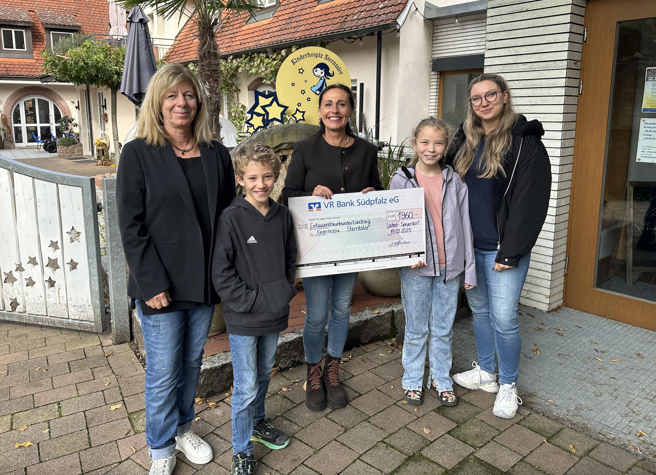 Der zweite Spendenscheck für das Kinderhospiz “Sterntaler” in Dudenhofen wurde von zwei Klassensprechern aus Stufe 4 gemeinsam mit Frau Hoffmann und Frau Tost eine Woche später vor Ort in Dudenhofen überreicht. Leif und Lotta, Klassensprecher der 4b, kommentierten die Übergabe wie folgt: “Es war richtig schön zu sehen, wie liebevoll dort alles eingerichtet ist und wie herzlich die Menschen sind, die dort arbeiten, um den Familien zu helfen. Es ist aber auch traurig, dass für so eine wichtige Sache kein Geld da ist und die Leute dort auf Spendengelder angewiesen sind.”