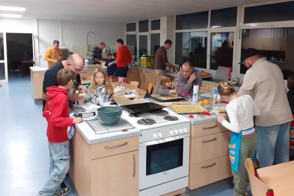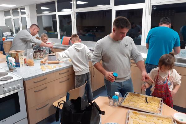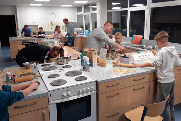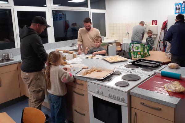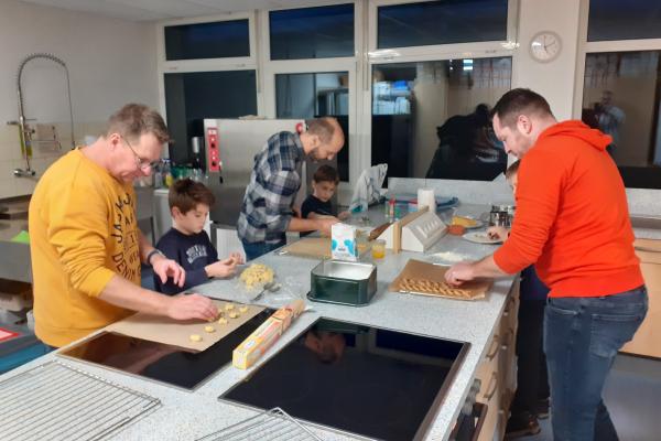 Dabei werden, wie der Name schon sagt, von den Papas - insgesamt hatten sich 32 (!) Papas angemeldet - zusammen mit ihren Kindern Plätzchen gebacken, die bei der Veranstaltung „Advent im Dorf“ am 06. und 07. Dezember verkauft werden. Verkaufsstellen sind sowohl beim „Sternenzauber im Hof“ (Karl-Ohler-Str.8) als auch beim „Förderverein Kita Pestalozzistraße e.V. & Familie Freytag-Schleifer mit Schulgemeinschaft August-Becker-Schule“ (Hammpetergässel). Der Erlös kommt der Schulgemeinschaft zu Gute.