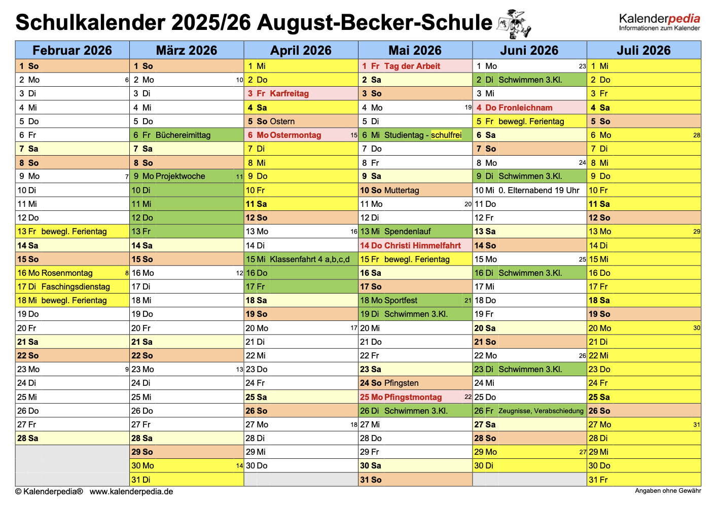 Kalender als PDF zum Ausdrucken, Stand 10.03.26