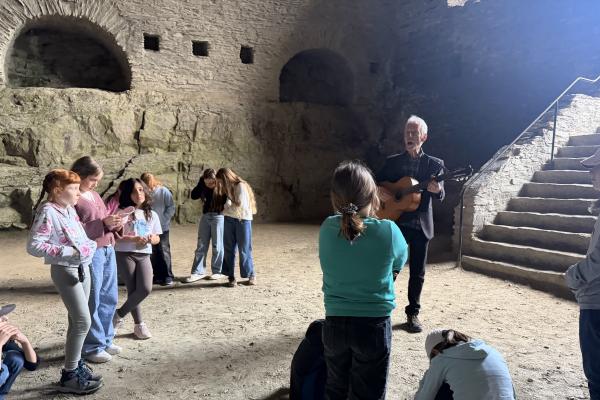 Wir waren auf der Burg Rheinfels. Da gab es ein Burgverlies. Die Burg Rheinfels wurde 30 Mal angegriffen, aber niemals eingenommen. Die Franzosen haben die Burg Rheinfels geschenkt bekommen. Kinder ab 13 Jahren tranken damals über 3L Wein. Es gab dort eine große Höhle, da wurde der Wein gelagert. In der Höhle hat uns einer der Burgführer ein Lied mit der Gitarre vorgespielt und dazu gesungen. (Metehan und Fabian)