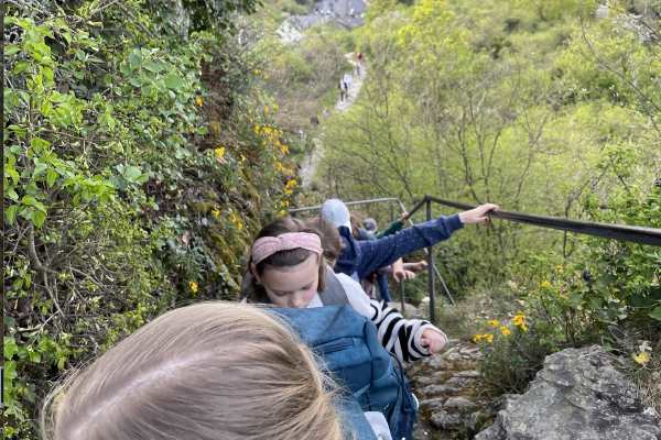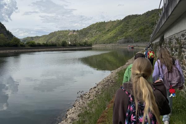 Auf dem Rückweg sind wir viele Treppen zum Rhein hinuntergestiegen und wieder zurück zur Fähre gelaufen. Danach sind wir noch durch die Stadt St. Goar gelaufen und haben ein Eis gegessen. (Mika und Leon)